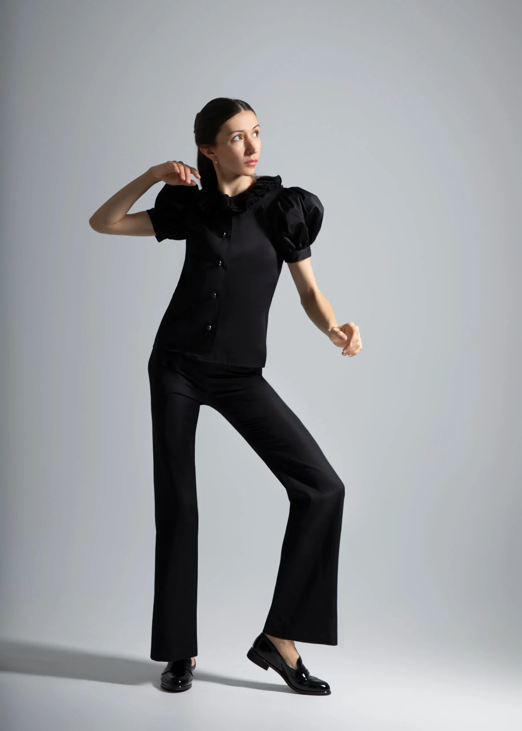 SALOMÉ – Pantalon de smoking noir en laine et soie