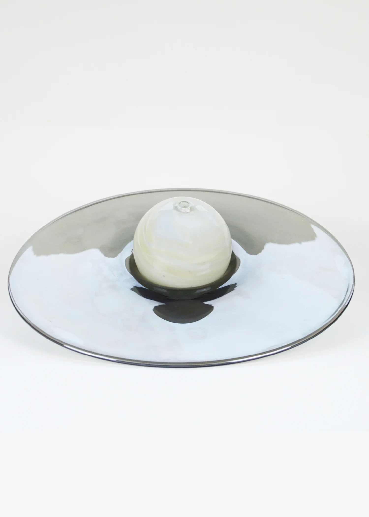 Évocation d’un équilibre céleste, le Soliflore Saturne associe la douceur d’une sphère ivoire marbrée à la profondeur d’un socle en verre noir. Son design épuré révèle la beauté du contraste entre opacité et transparence, légèreté et gravité. Chaque pièce, soufflée et façonnée à la main en France, célèbre la précision du geste artisanal et la poésie du verre en mouvement.