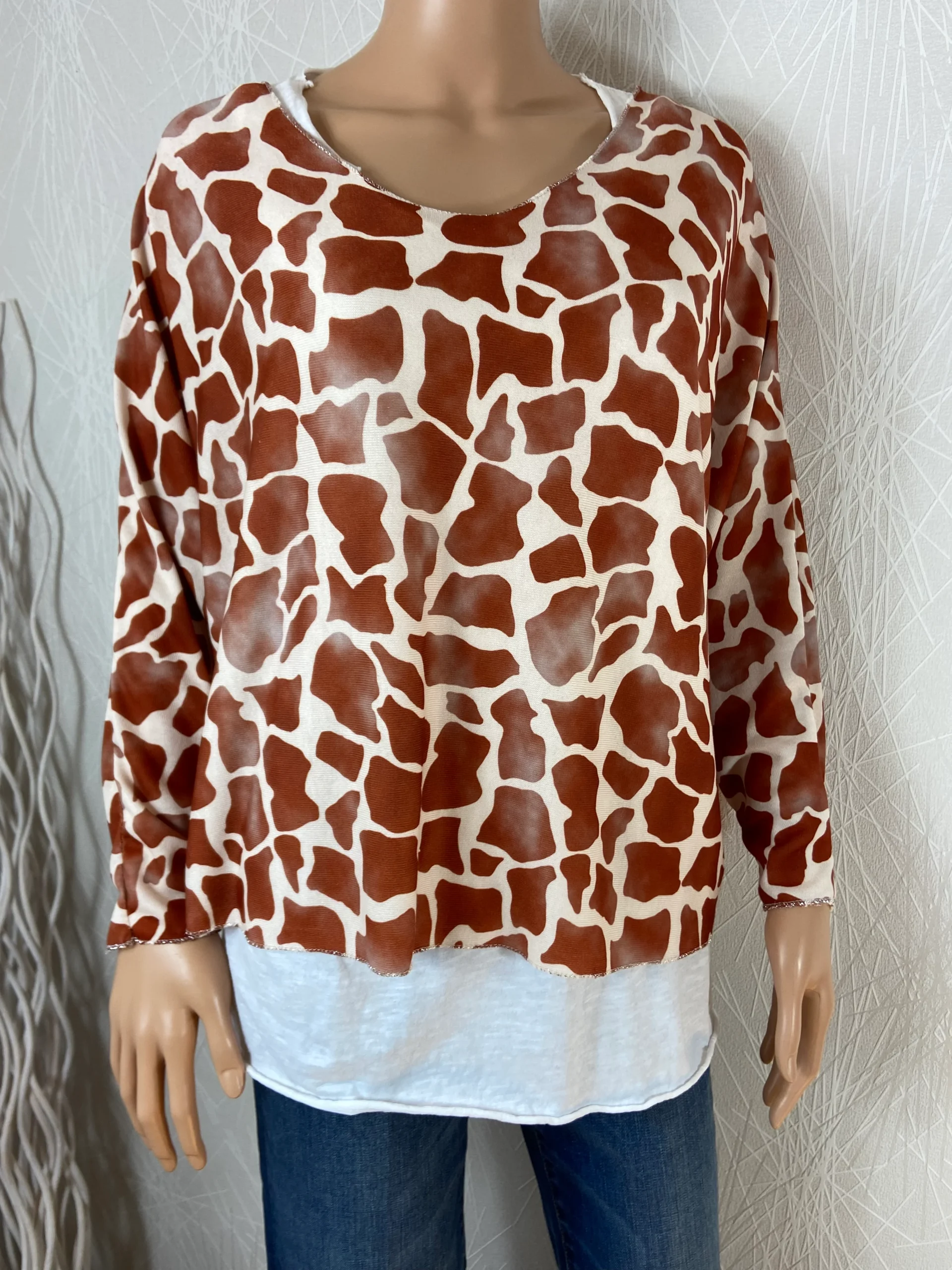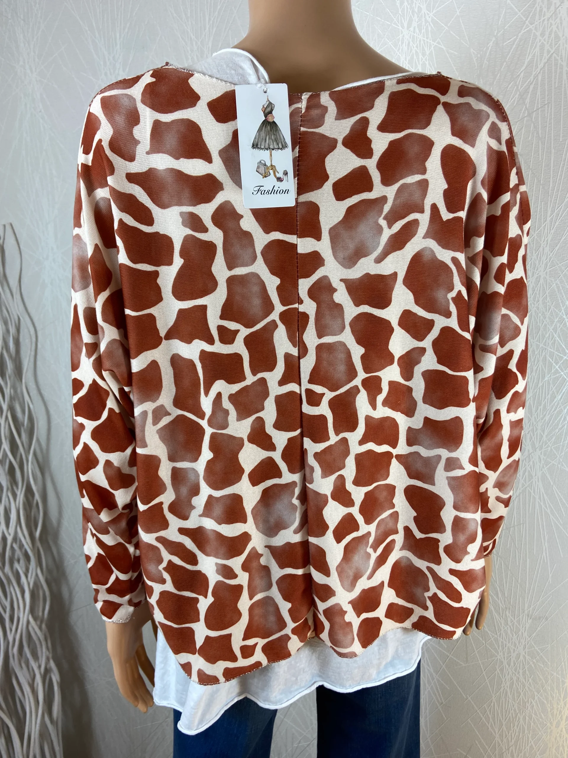 Superposition blouse ample à motif animalier et top blanc Made In Italy