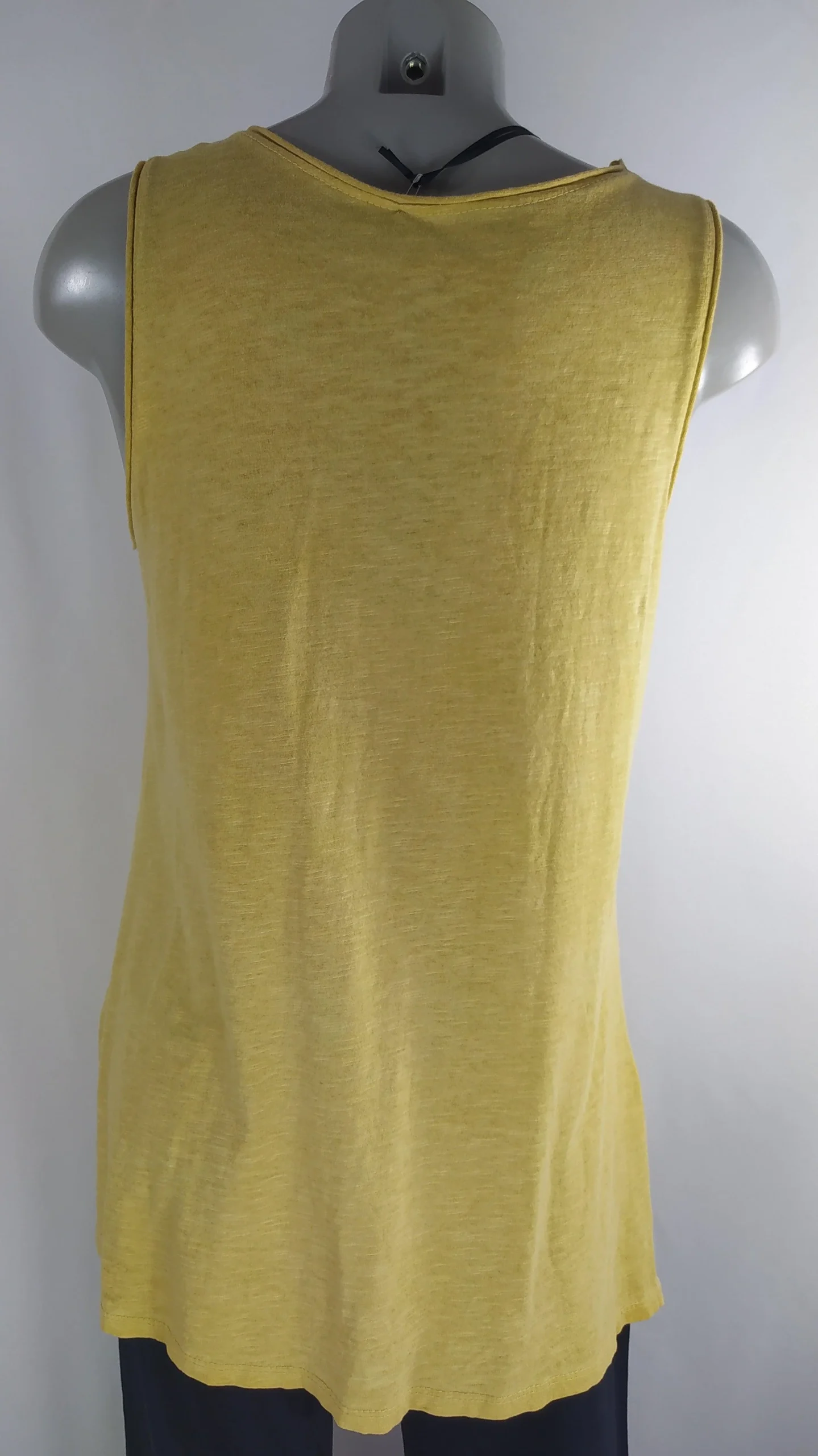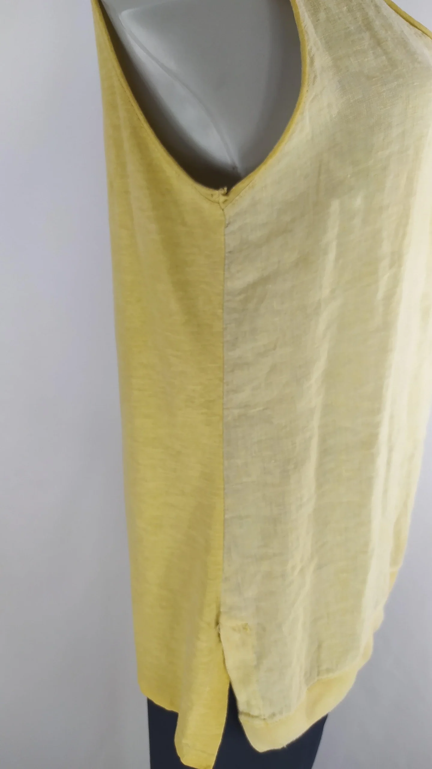 T-shirt en lin sans manches encolure V avec fente sur les côtés.