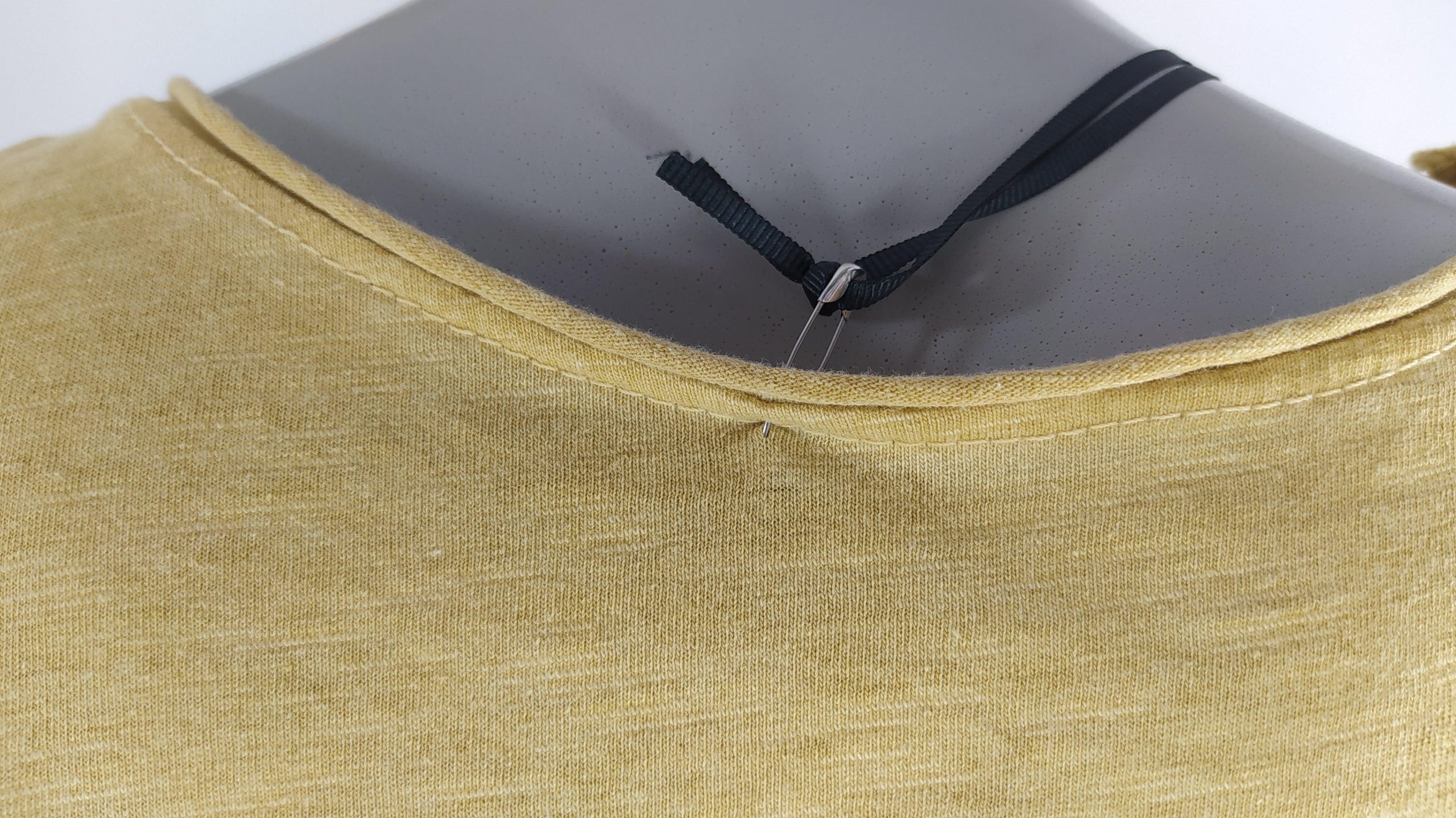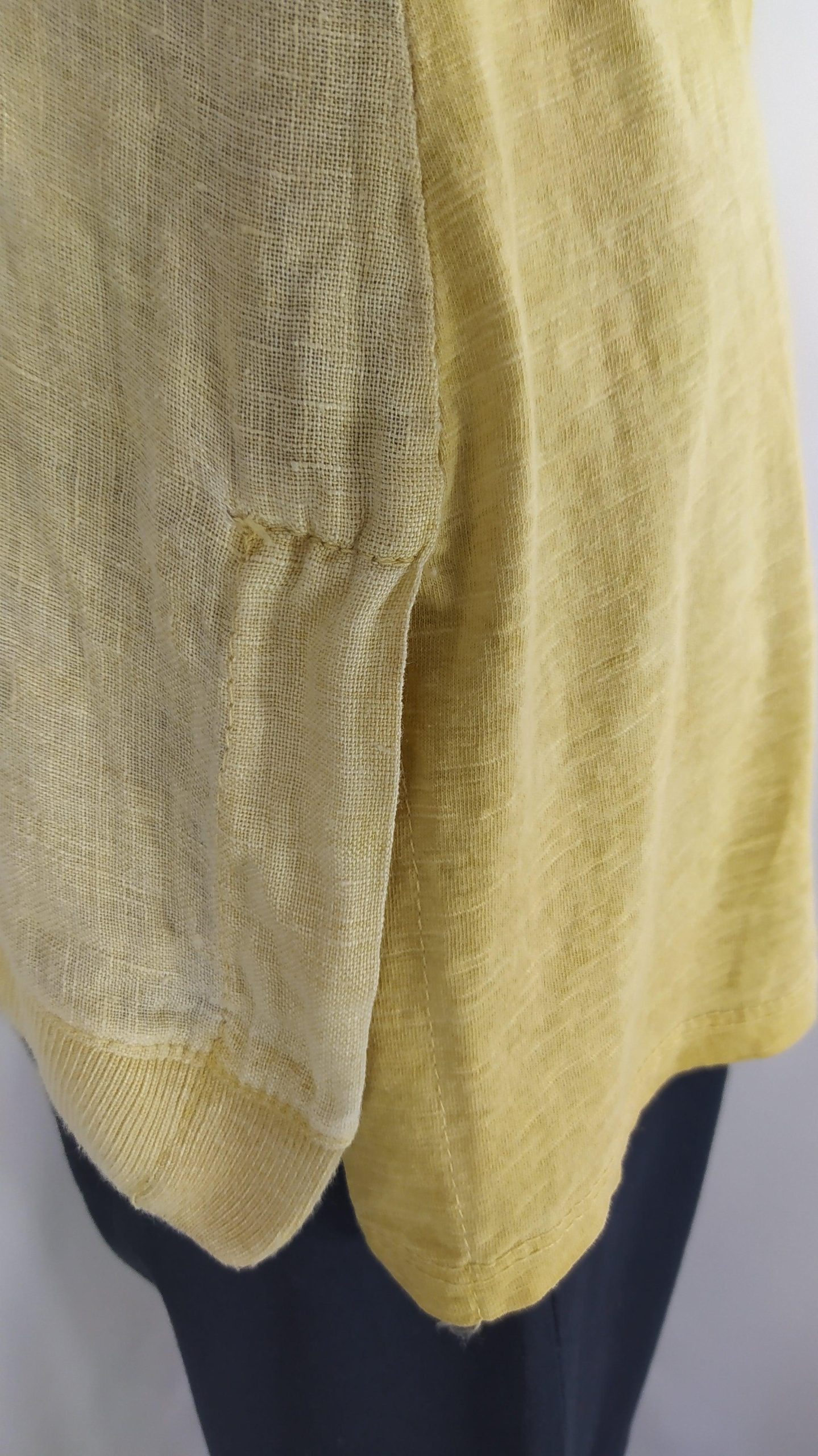 T-shirt en lin sans manches encolure V avec fente sur les côtés. le tissu devant est en lin et la partie dos est en coton. Un beau T-shirt pour femme avec étoile en strass. Composition : 50 % lin / 50% coton Couleur jaune Taille L / 40 – Réf : 40BT991 Valeur en boutique […]