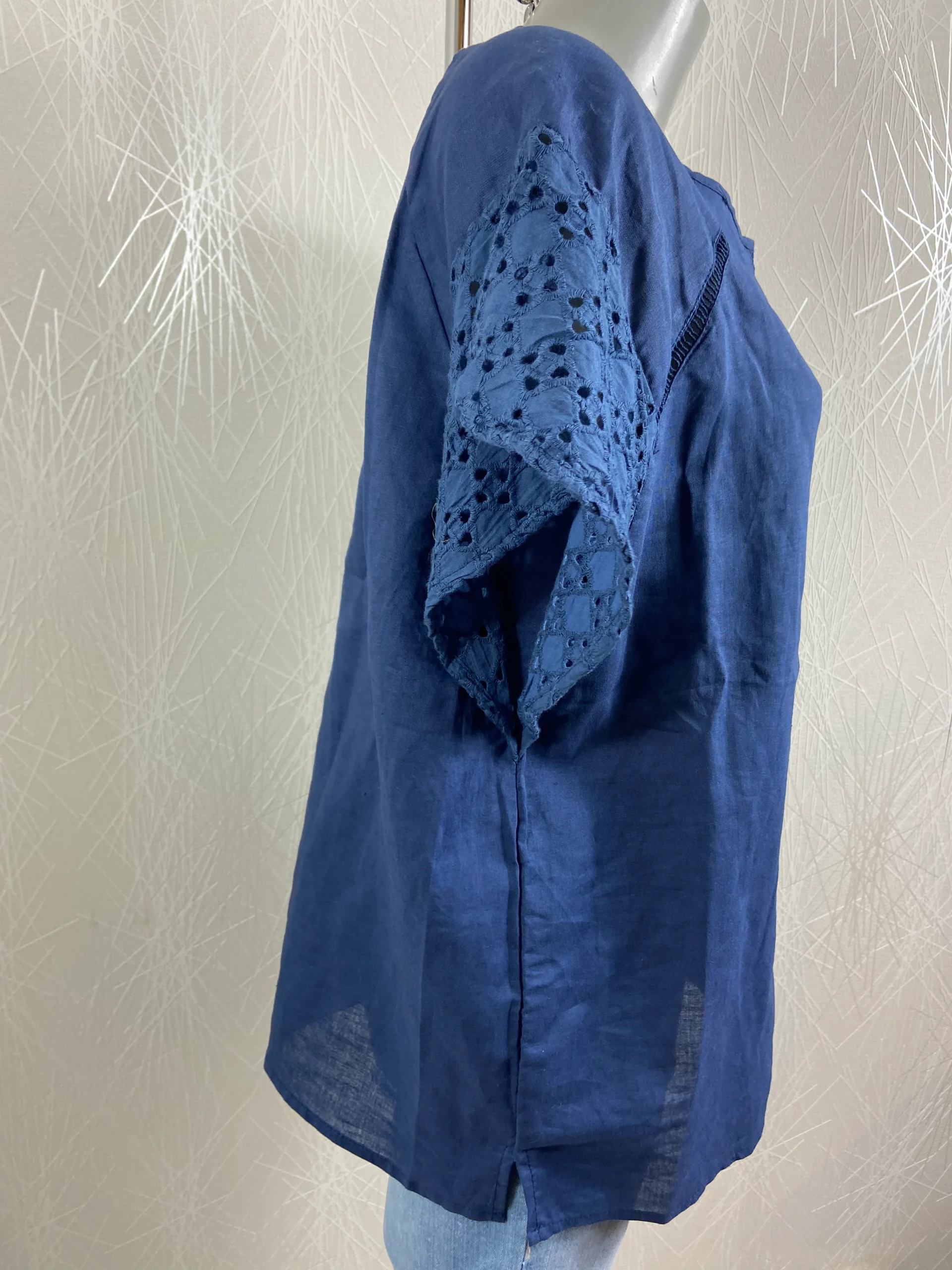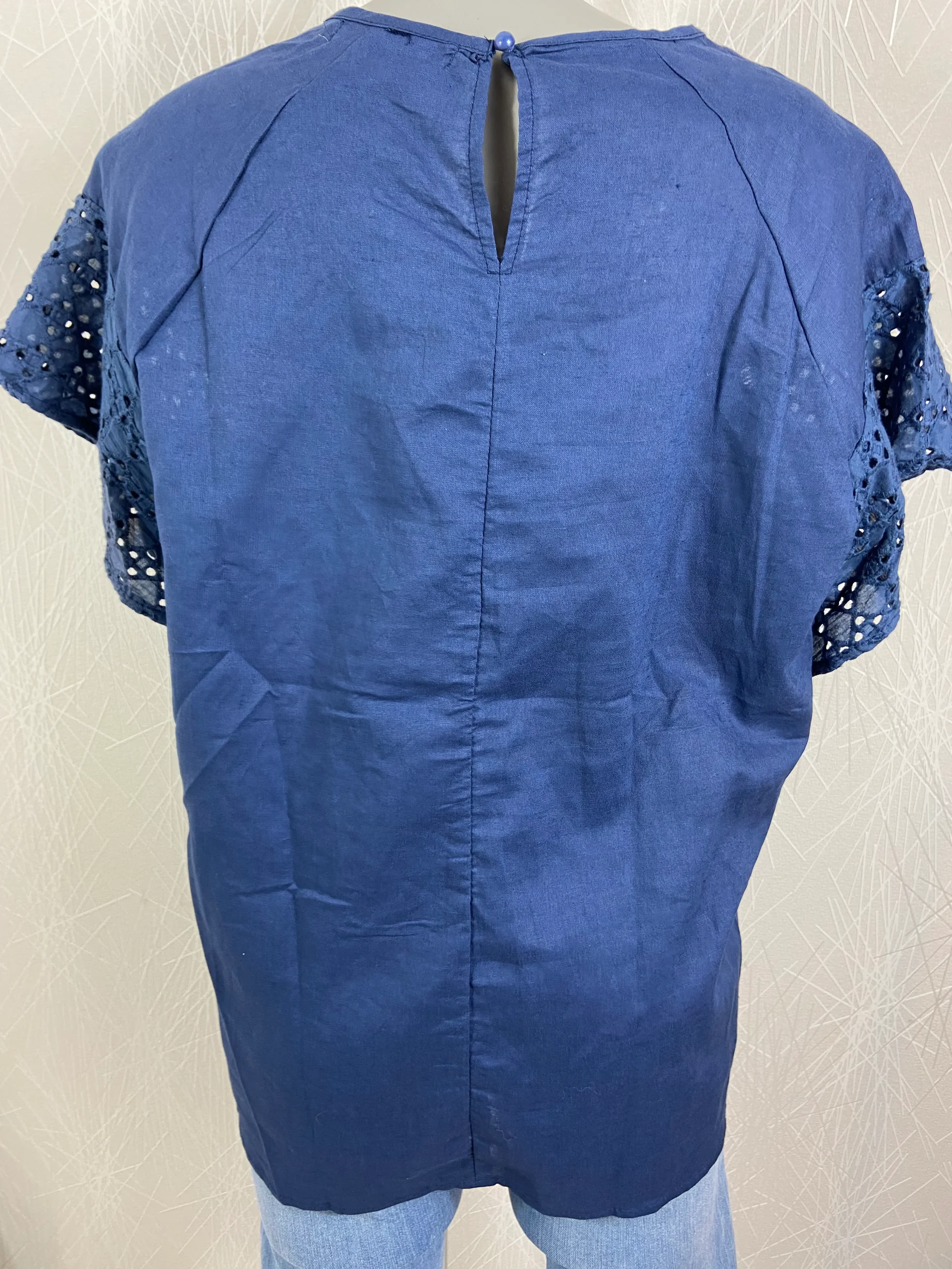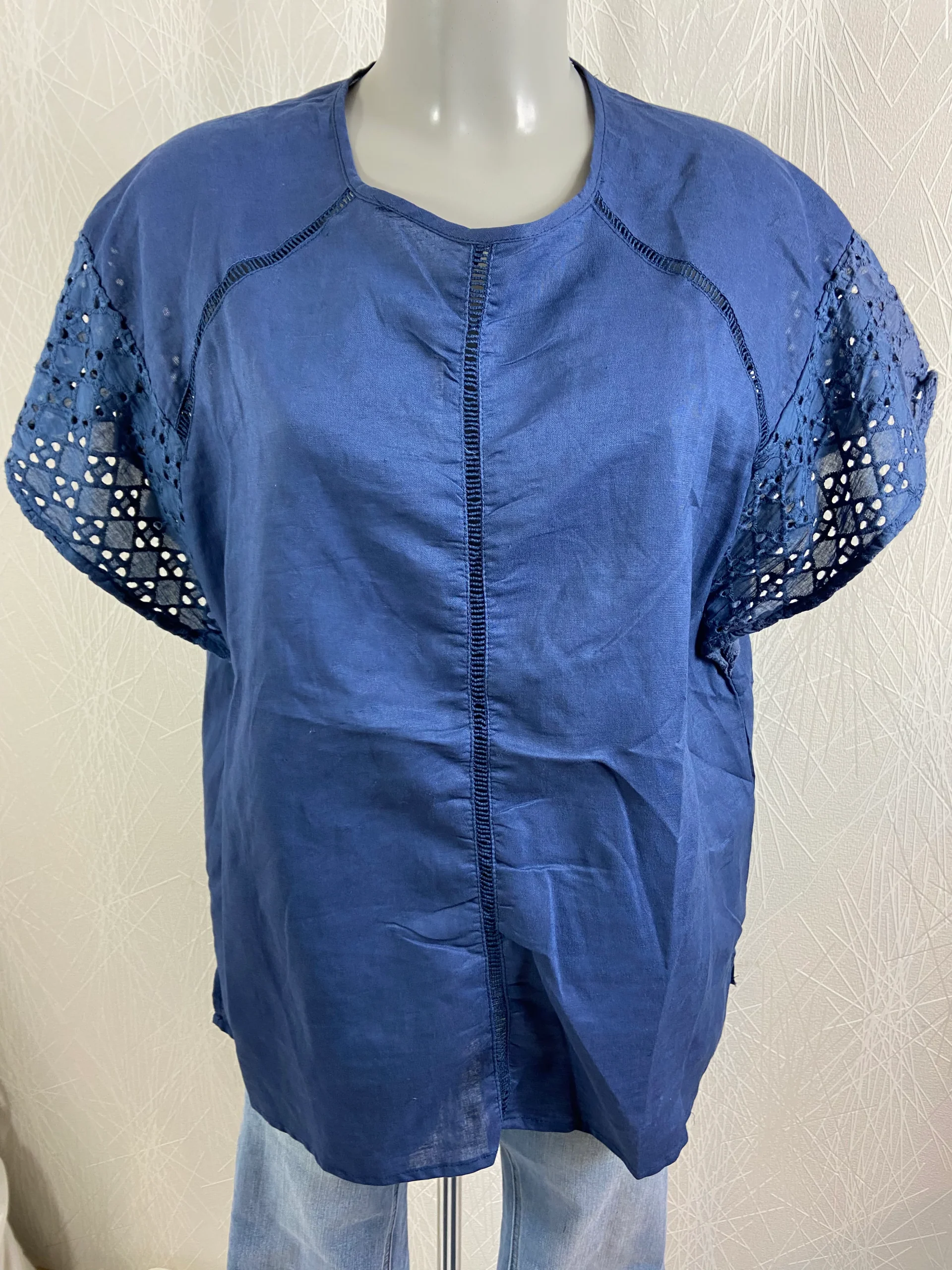 T-shirt léger de la marque Ky Création. Encolure ronde, manches courtes, ajouré et ample. Matière : 60% viscose – 20% coton – 20% lin. Couleur : Bleu Dimensions Taille 38 : tour de poitrine : 110 cm ; longueur : 65 cm. Dimensions Taille 40 : tour de poitrine : 116 cm ; longueur : […]