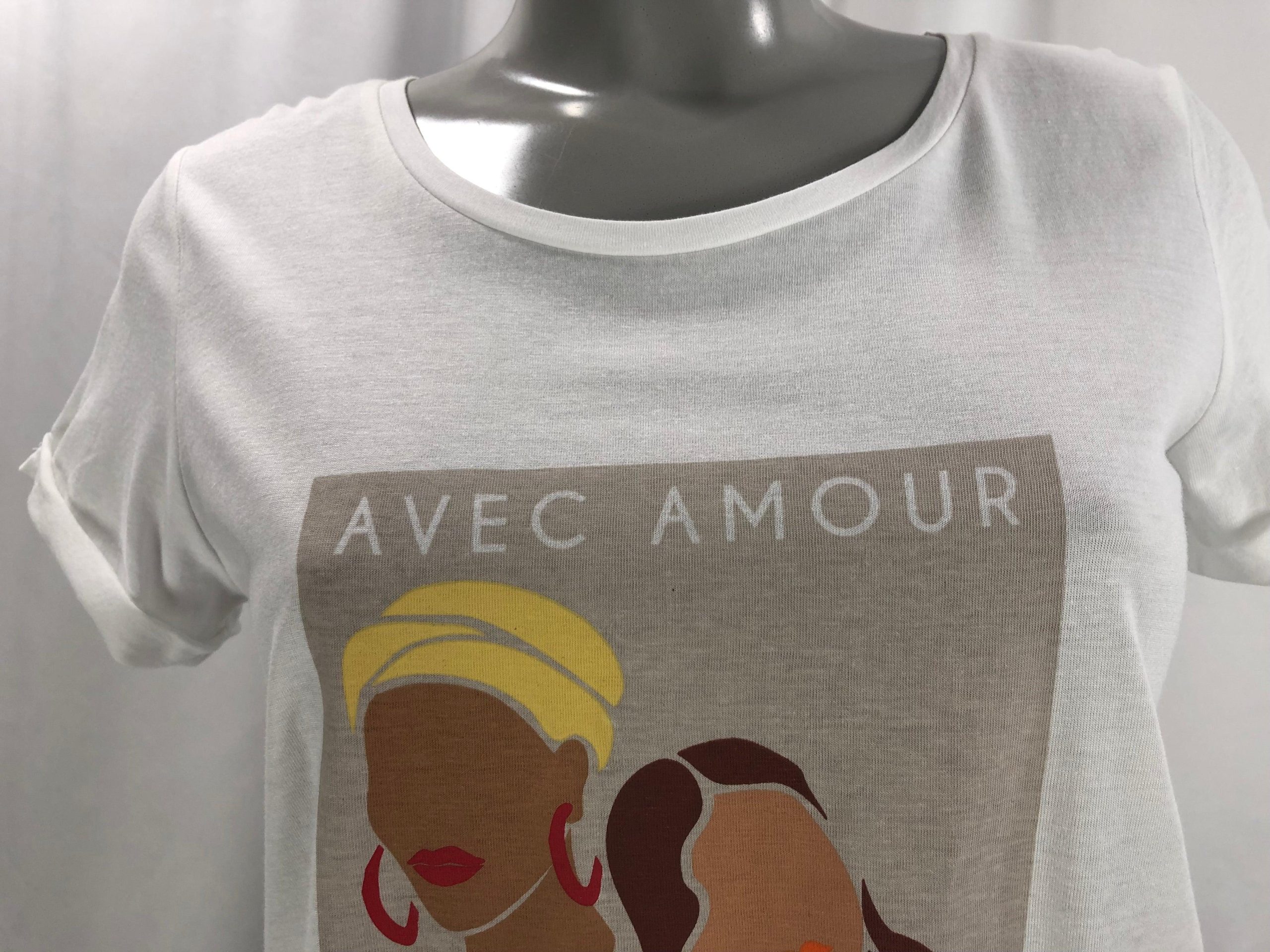 T-shirt manches courtes coupe ample modele Afrique avec Amour C’est beau la Vie
