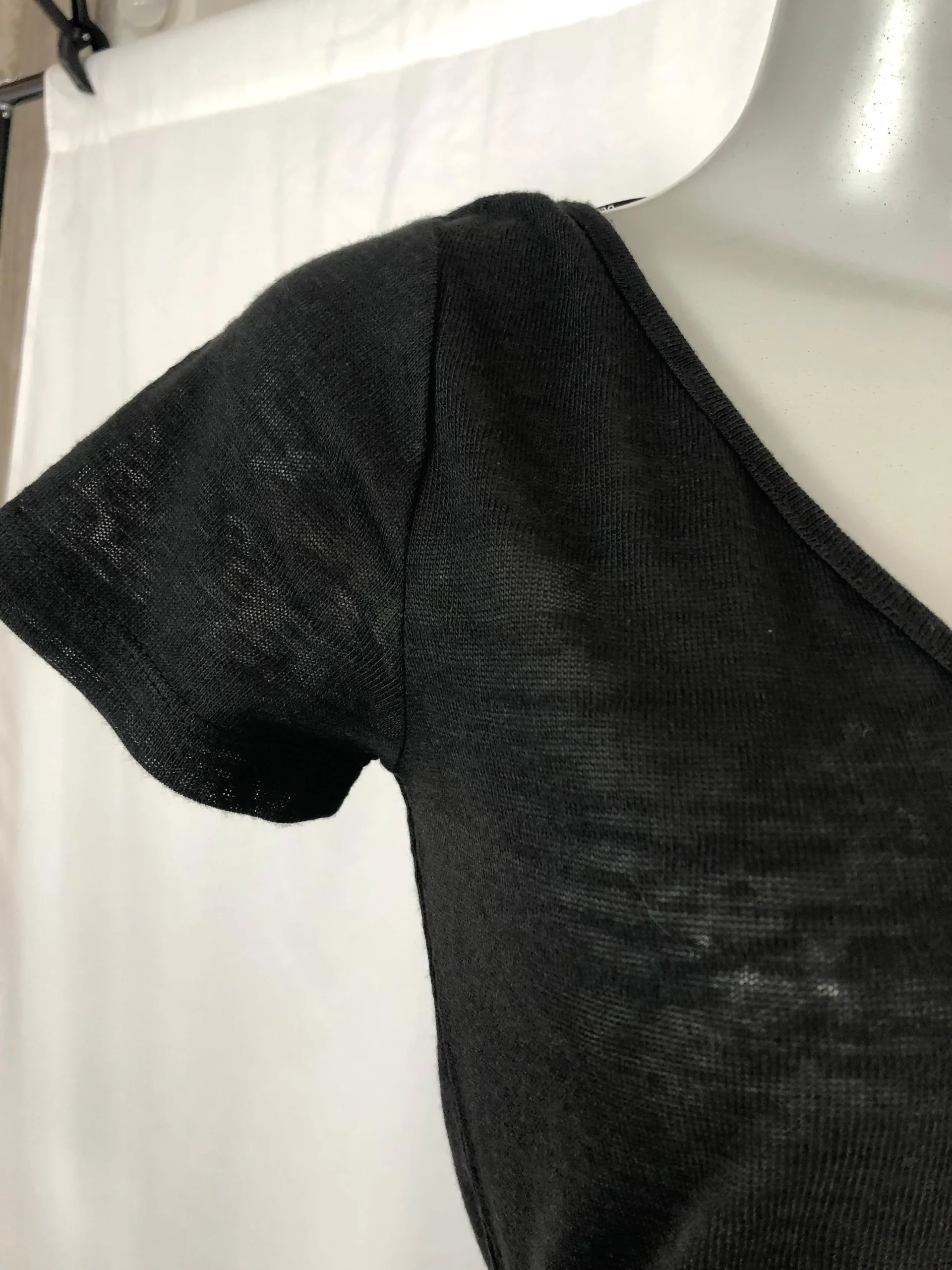 Joli Tee-shirt noir échancré avec dentelle dans le dos de la marque Deeluxe.