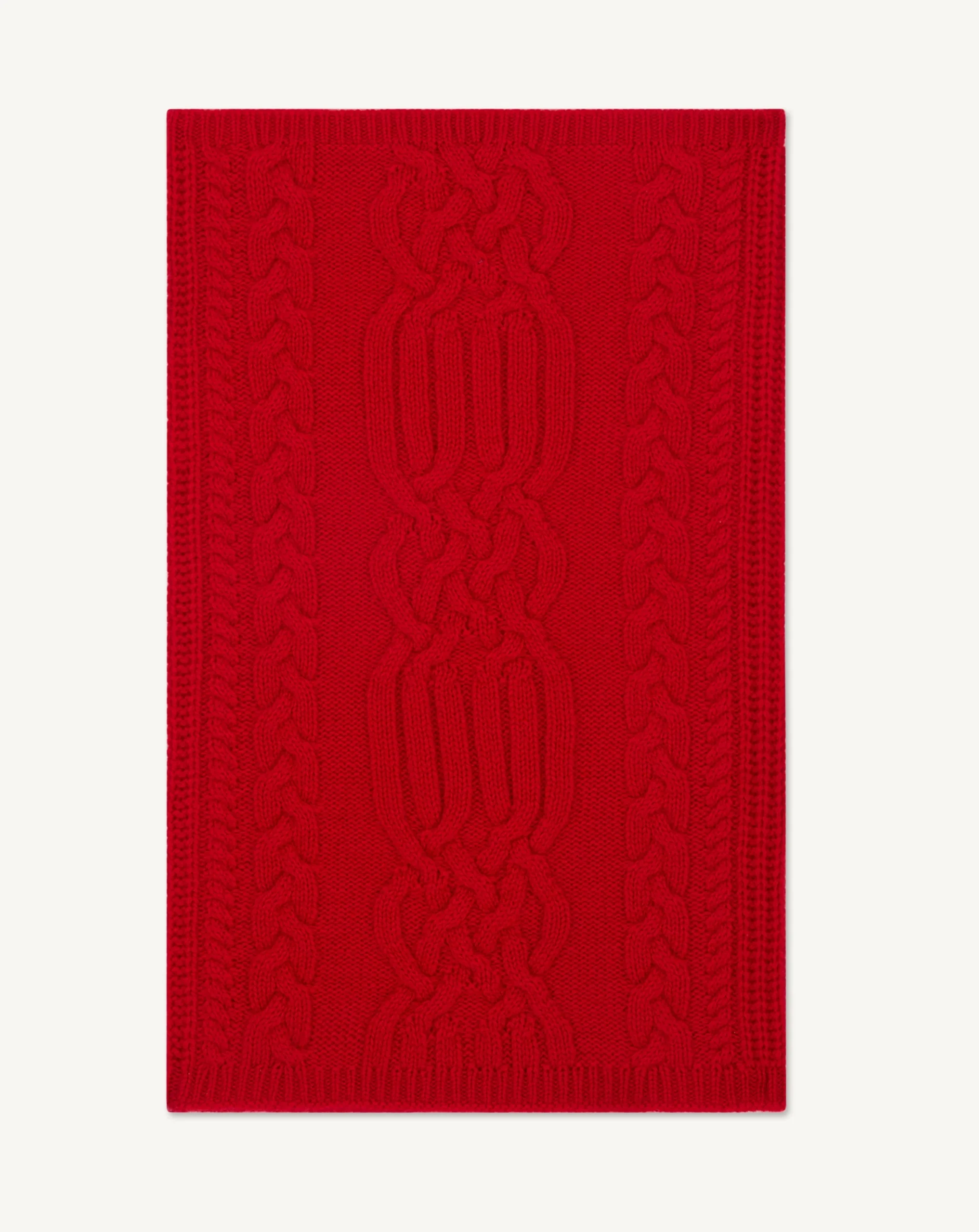 Tour de cou en cachemire à torsades. Ce modèle en édition limitée fait partie de la collection capsule imaginée pour les quarante ans de la Maison Bompard, hommage au travail de la torsade et à la beauté des couleurs.
