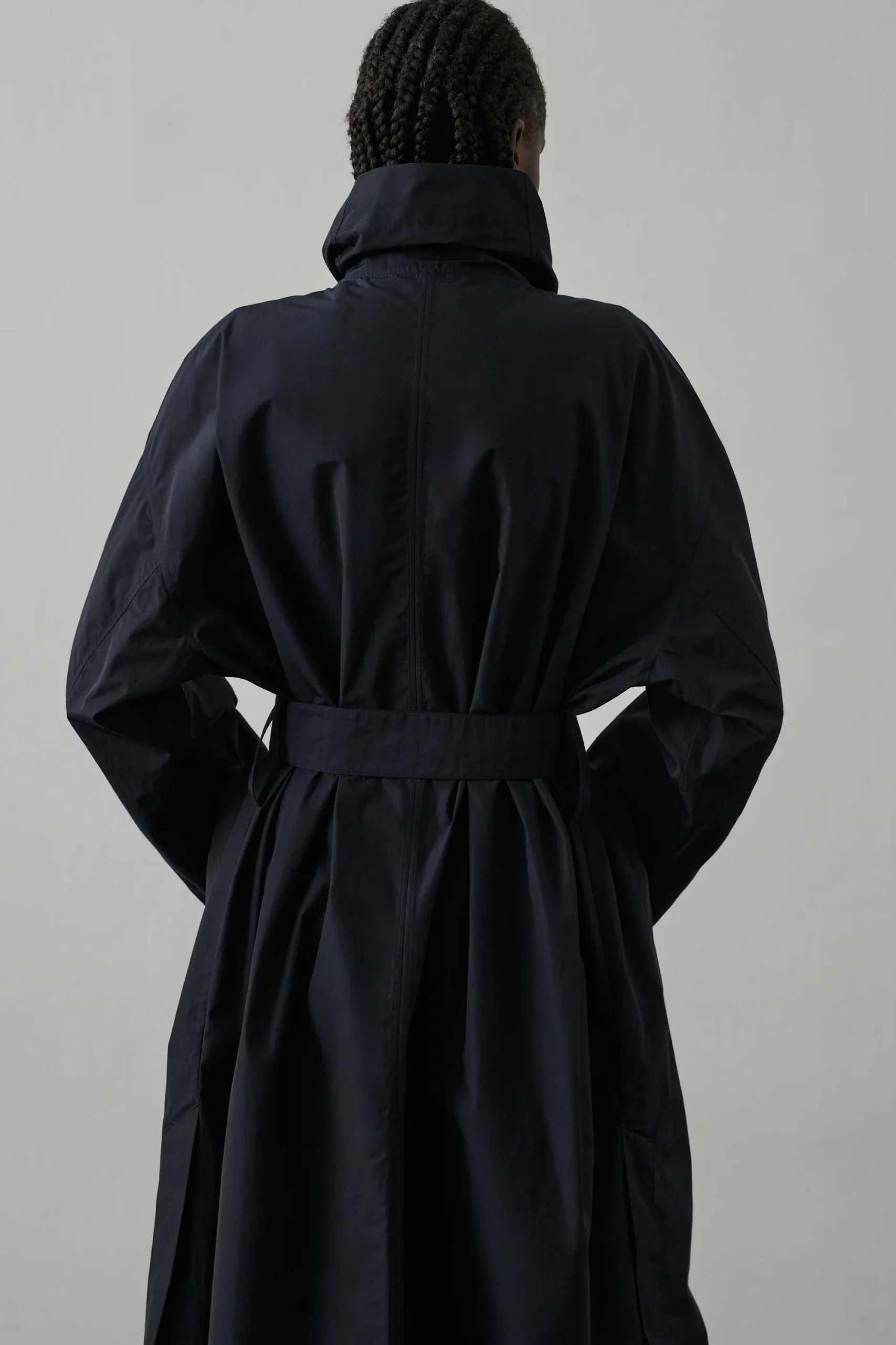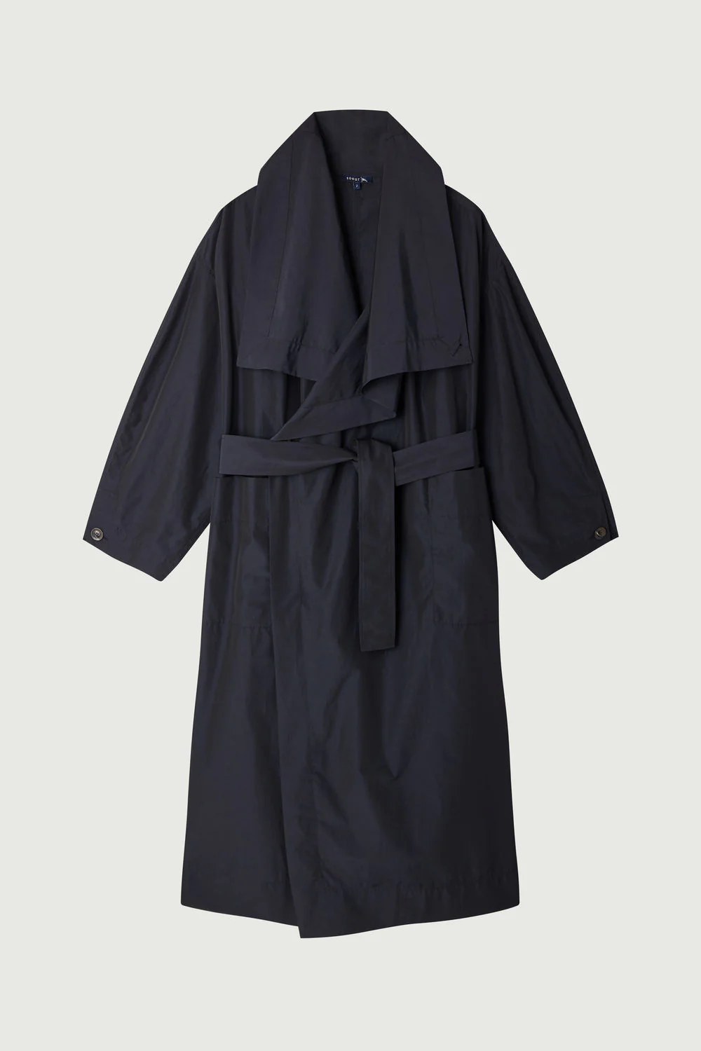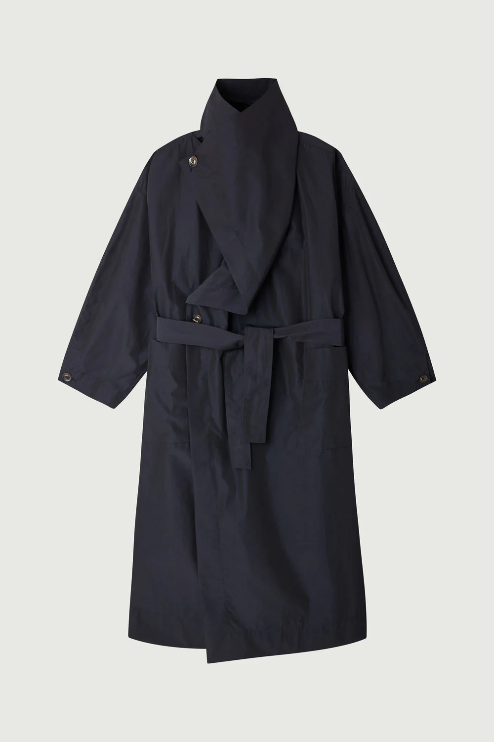 ALBATROS est un trench à la coupe peignoir qui se ceinture ou se porte détaché et ample. Son col généreux oversize crée un effet drapé, modulable à volonté, qui signe une allure couture. La toile de coton craquante apporte de la tenue au vêtement. Non doublé et déperlant, le manteau est léger et parfait pour la mi-saison.