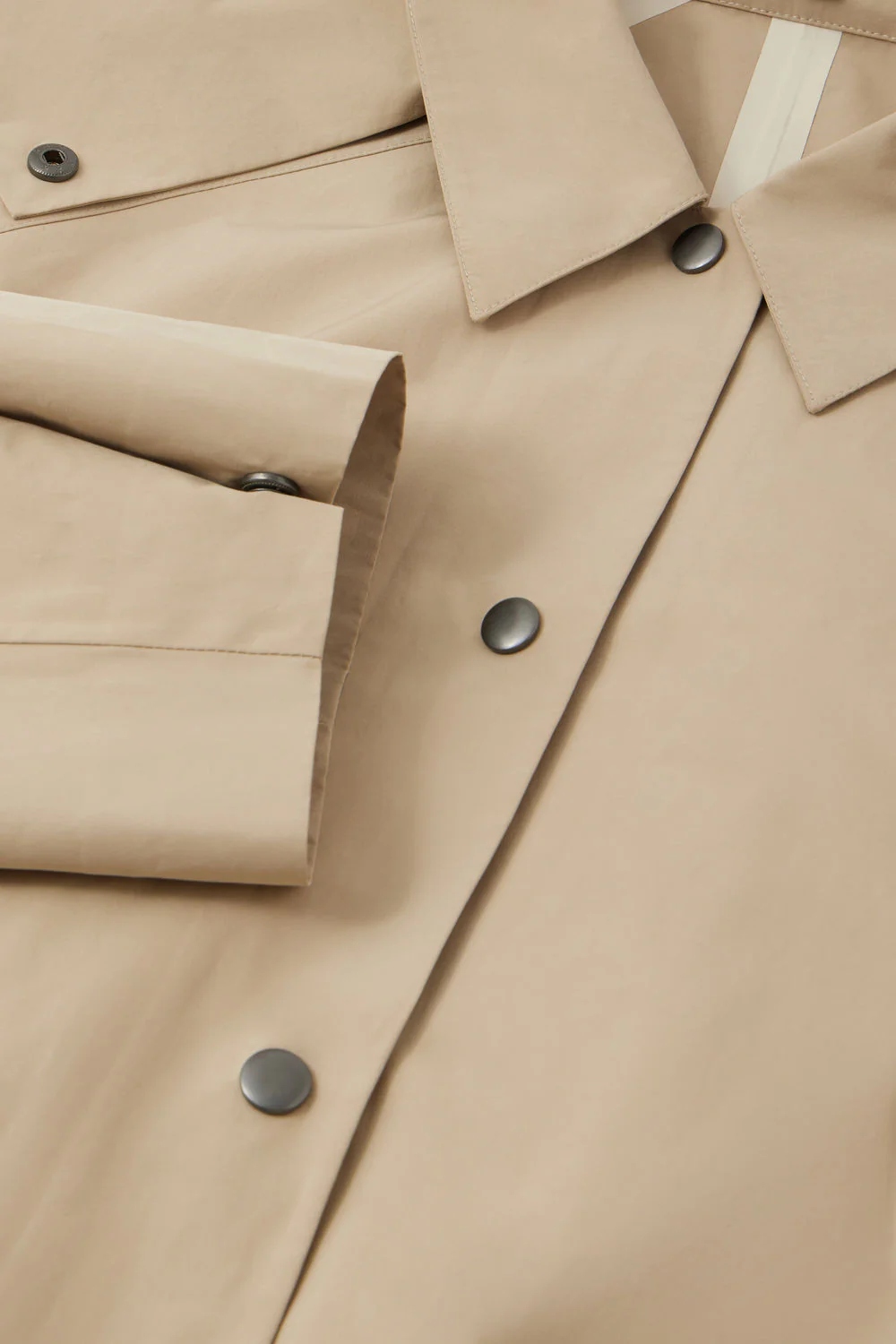 DUSTIN est un trench déperlant long à la coupe ample. Sa toile de coton technique offre une structure impeccable. Son beige lumineux, son minimalisme contemporain animé de détails délicats – finition intérieure gansée, boutons pression, manches resserrables – en font un essentiel qui traversera le temps.