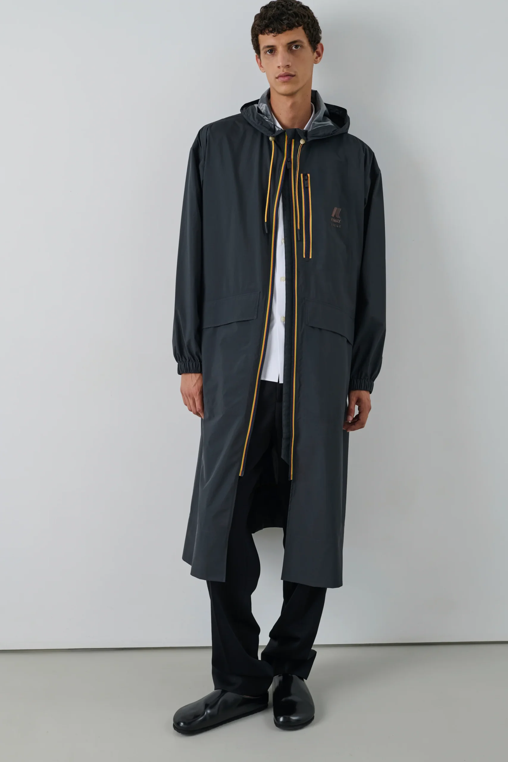 PRADEL est un trench hybride entre parka et trench à capuche. Son volume trapèze oversize se porte même par-dessus un manteau, avec coutures thermosoudées pour une étanchéité parfaite. Les pressions aux côtés facilitent l’accès aux poches, et les manches sont resserrées par un élastique qui prévient du froid et de l’eau.
