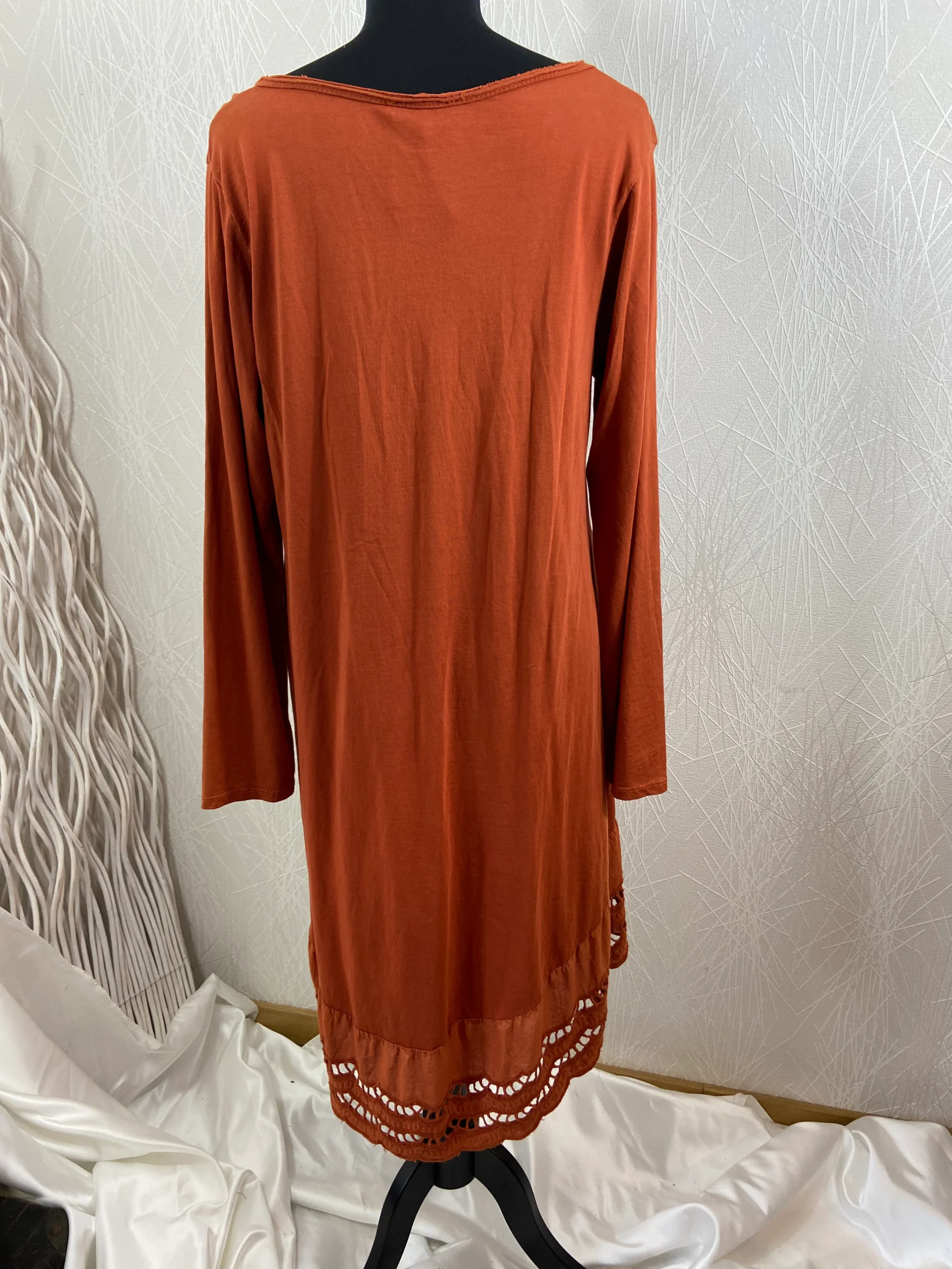 Tuniques à manches longues de la marque Milbleuet. Asymétrique, encolure ronde, près du corps avec du macramé en bas de la tunique. Matière : 100% coton. Couleur : Orange. Marque : Milbleuet. Taille : L / 40 – Réf : 40HT1776 Dimensions : Largeur épaule : 44 cm ;tour de poitrine : 92 cm ; […]