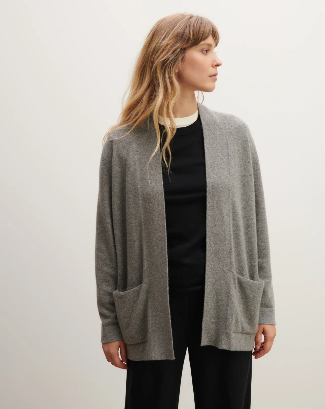 Veste femme en pur cachemire, à porter ouverte ou ceinturée pour une silhouette cosy chic.