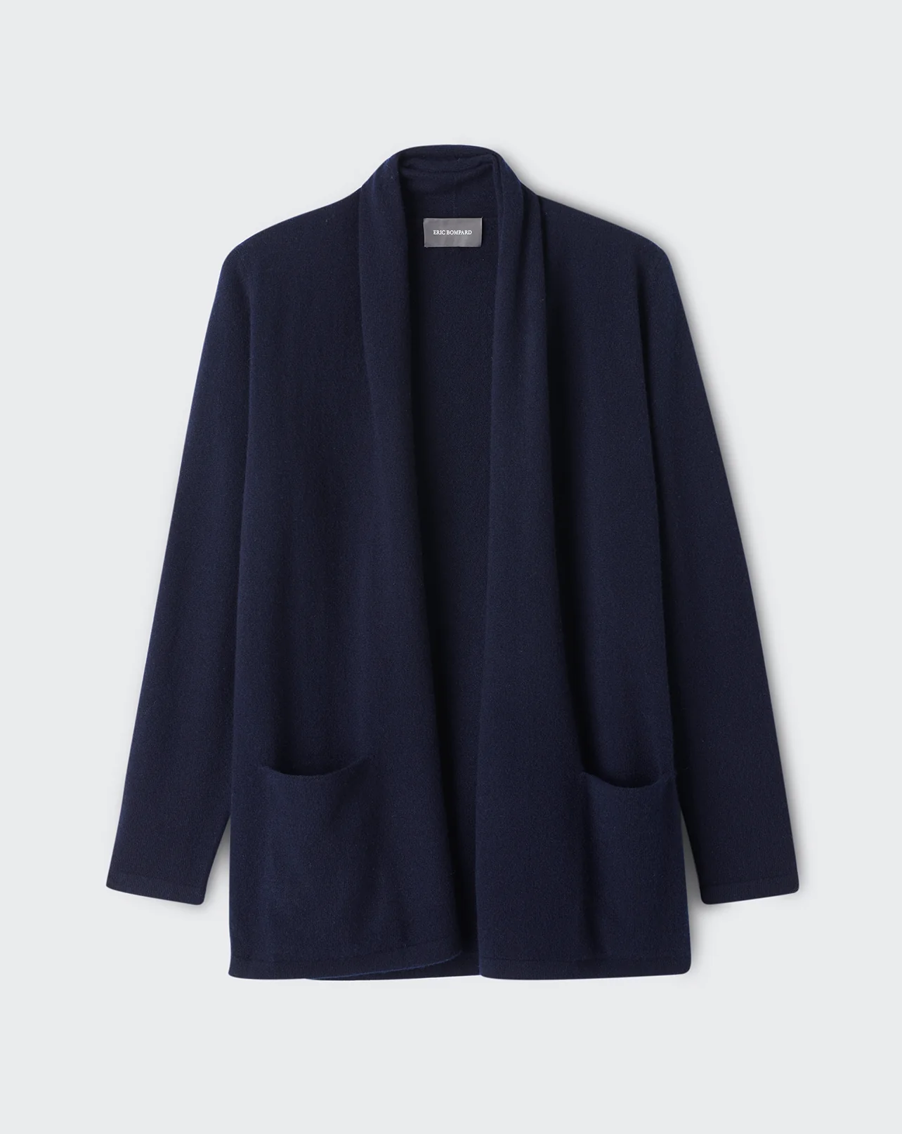 La veste cosy déclinée en une multitude de coloris, est un modèle culte de la Maison Eric Bompard qui adopte un volume enveloppant et douillet accentué par un col drapé.