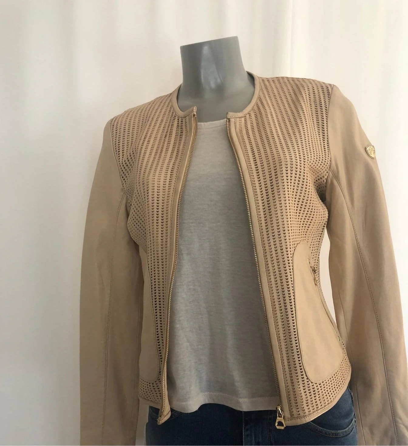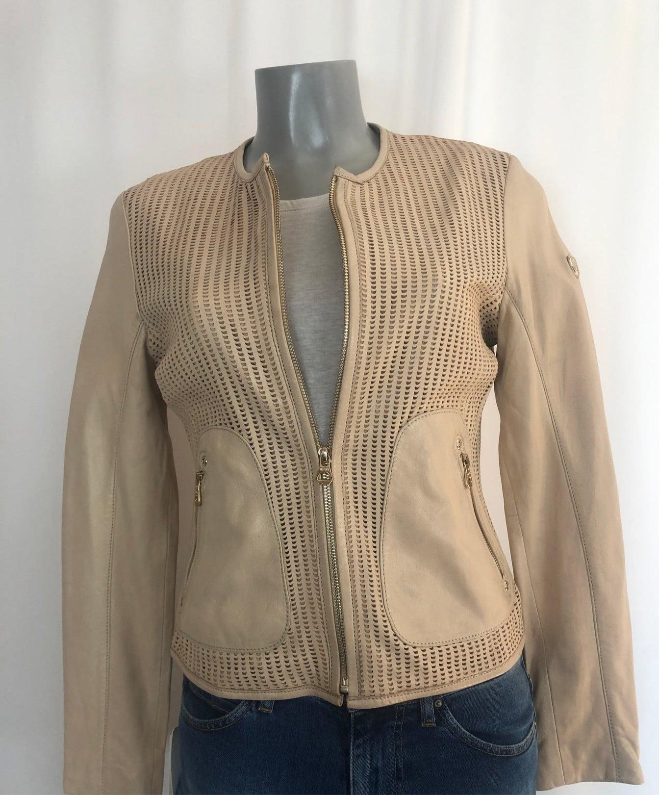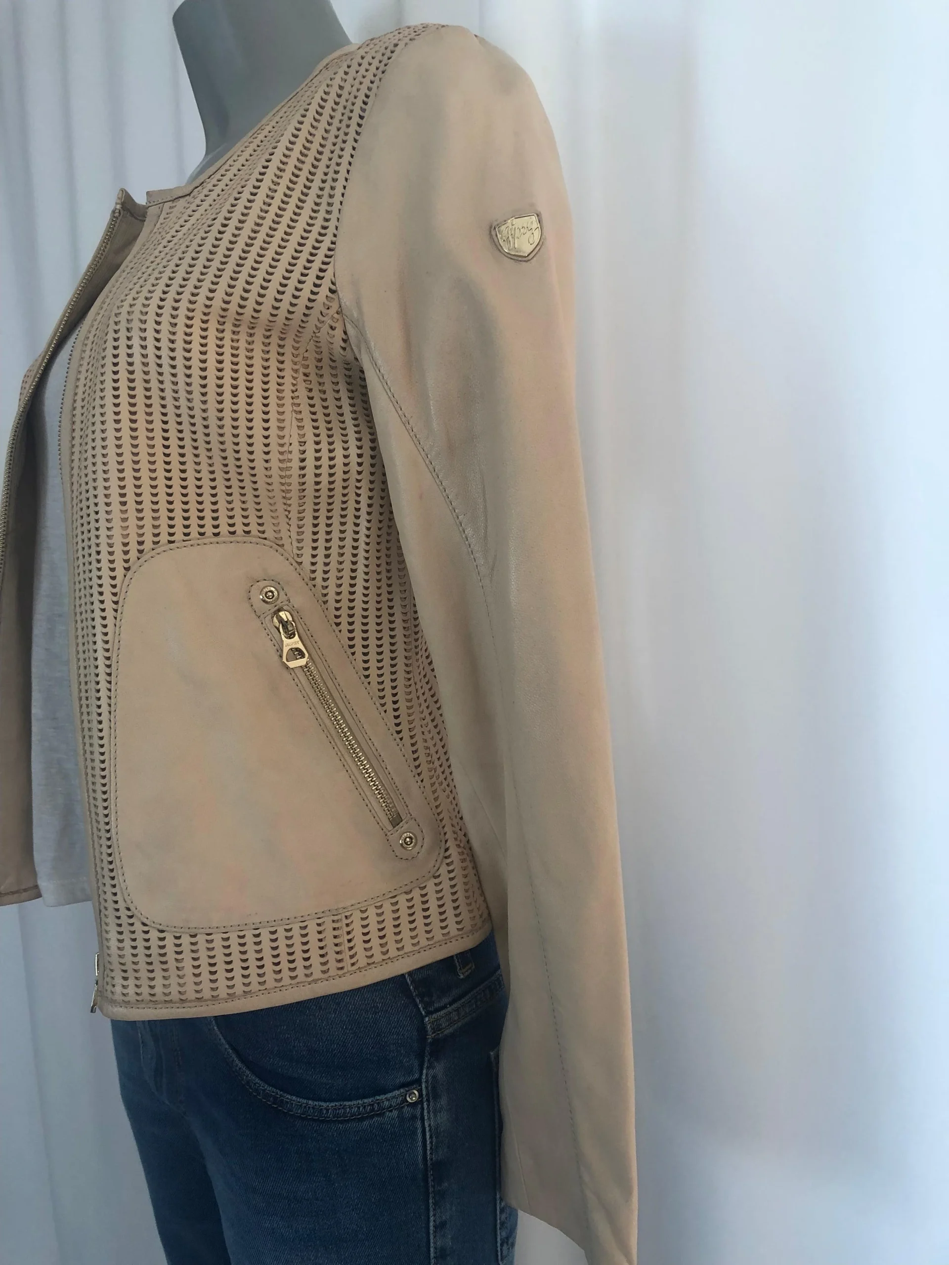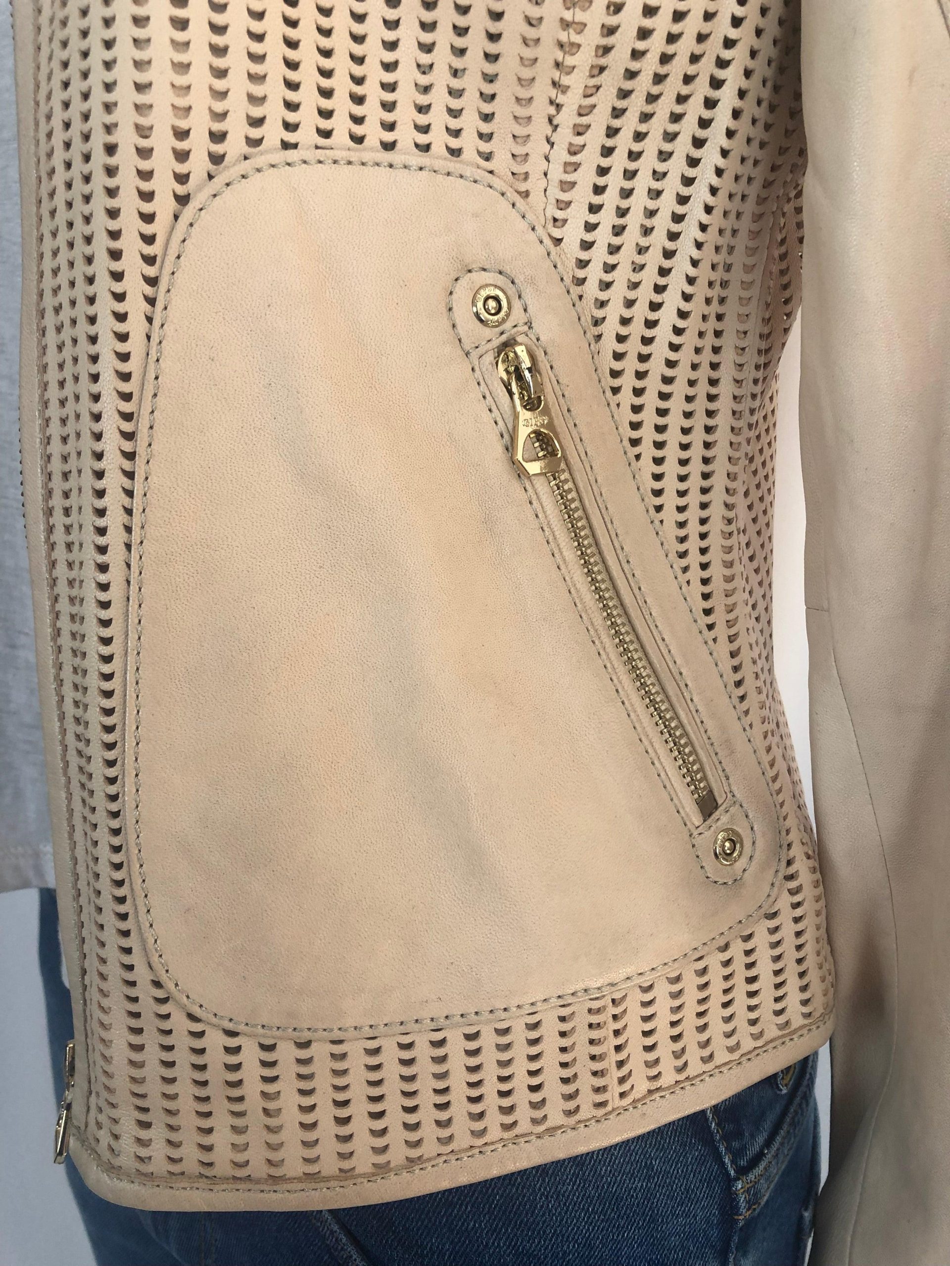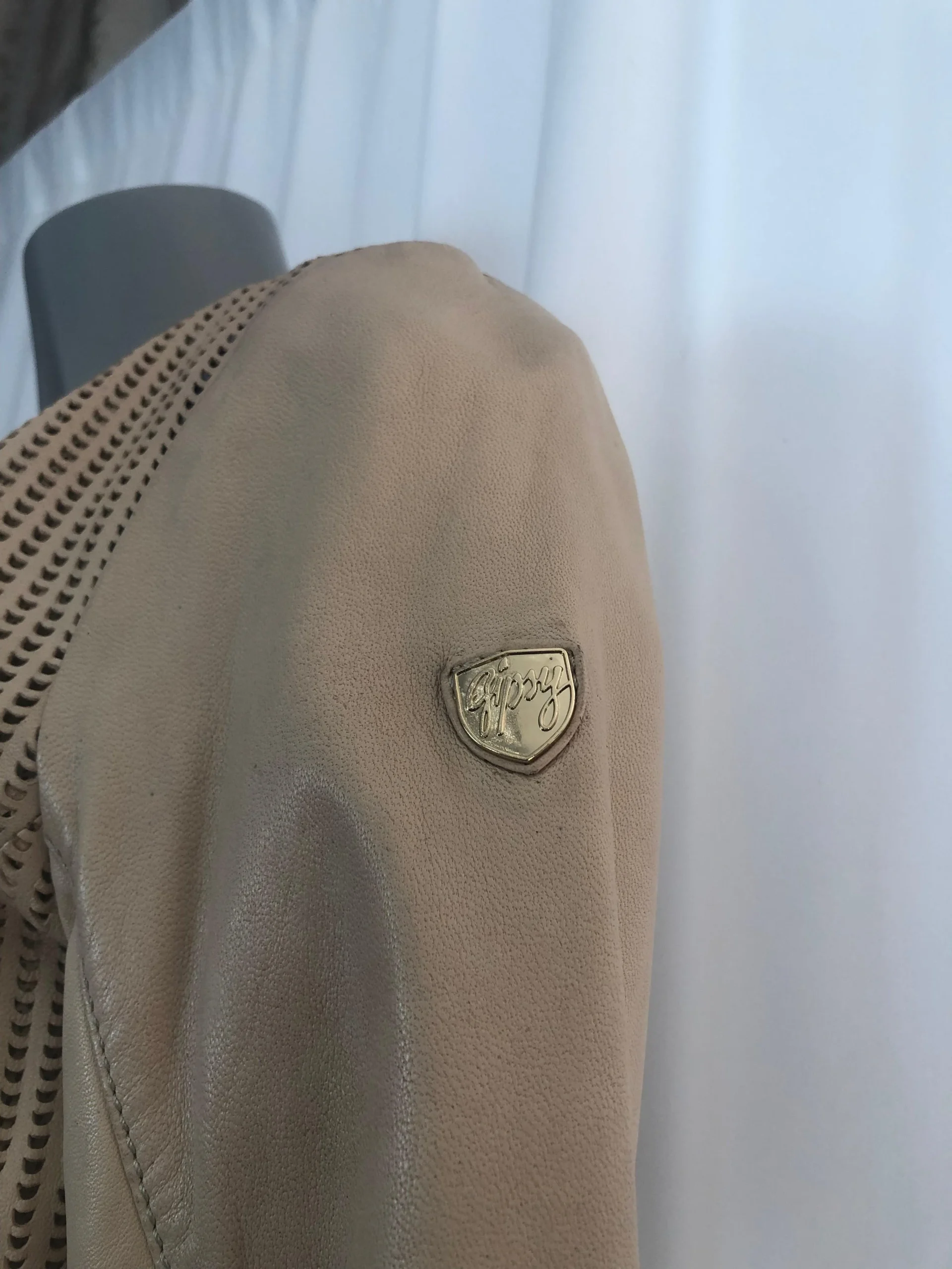 Veste doublée legere cuir souple ajouré beige Gipsy