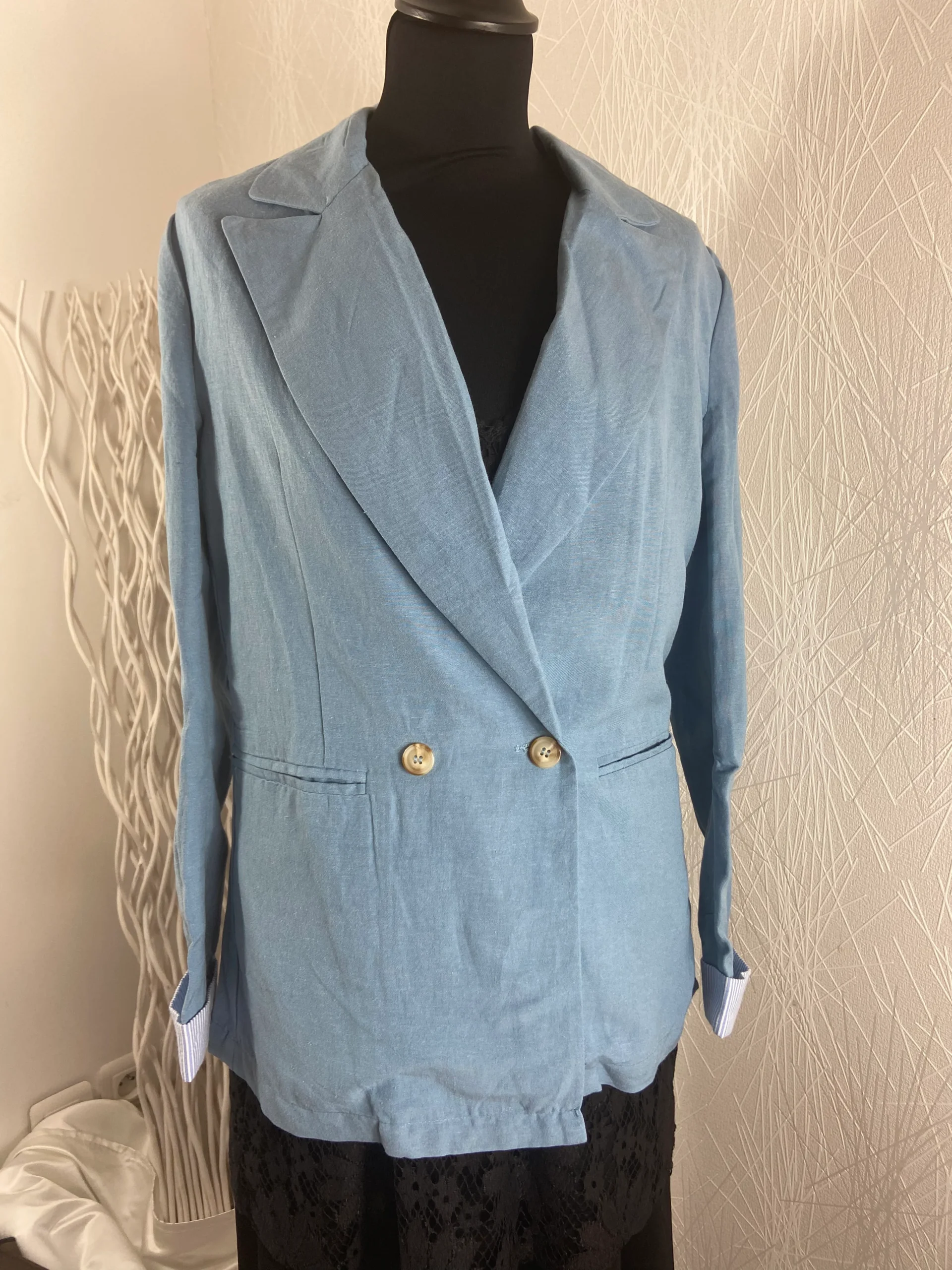 Dimensions Taille 38 : Largeur épaule : 38 cm ; tour de poitrine : 100 cm ; longueur : 69 cm.