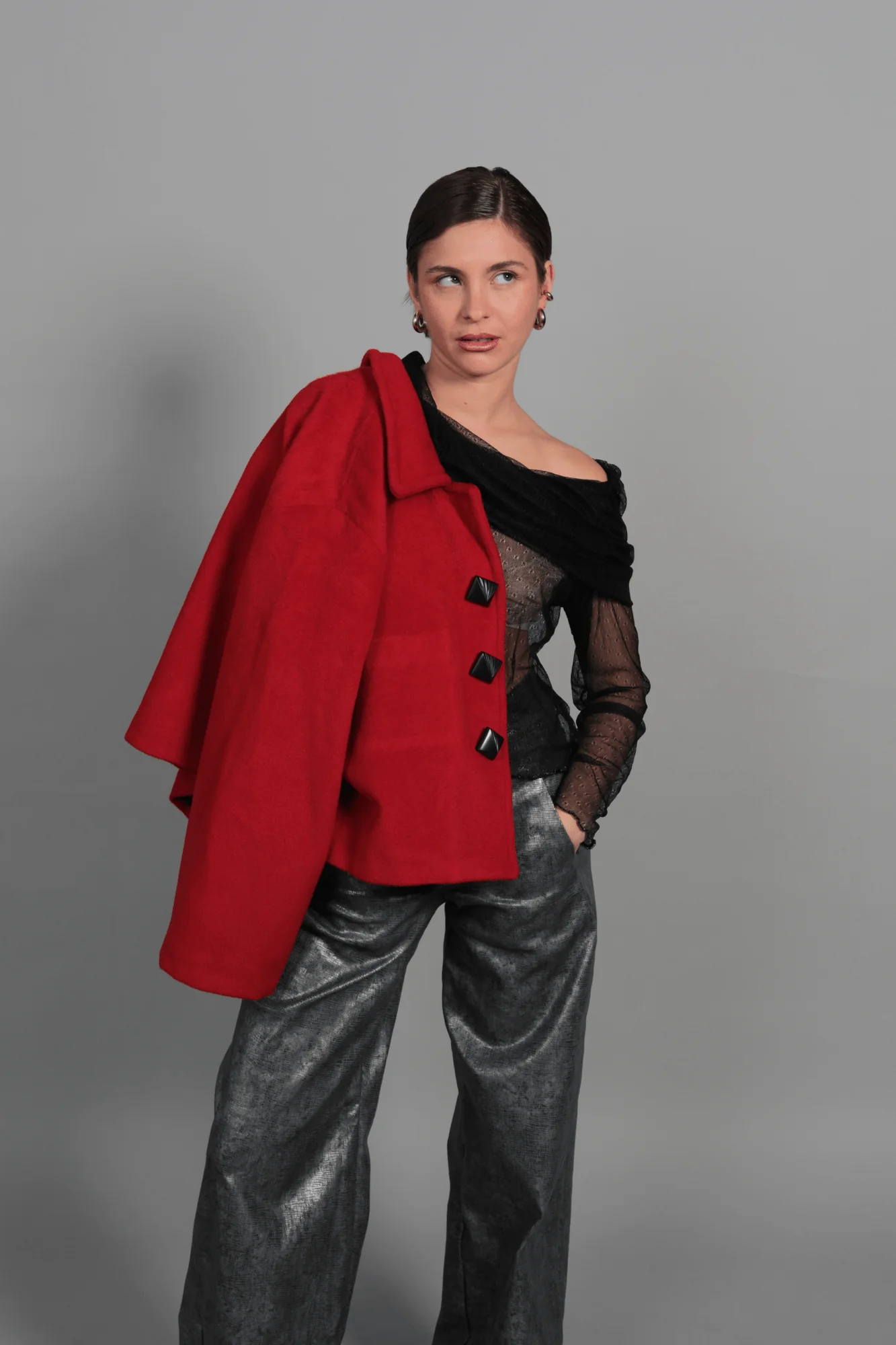 Coupe légèrement évasée, doublure exclusive. Pièce unique taille 38-40.